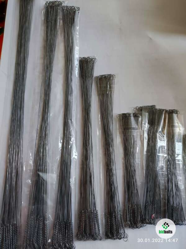 Поводки из Раменской струны. Материал темный матовый. Длинна 30см. Толщина материала 0.3. просты в обращении и очень эффективны . Скрутка с обоих сторон
