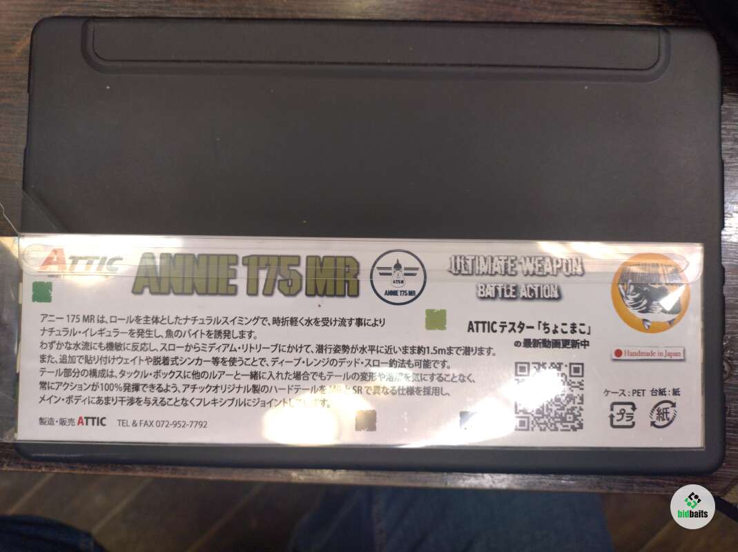 Приманка ATTIC Lures Annie 175 MR Swimbait имеет форму тела, которая обеспечивает большую дальность заброса и высокую реакцию, основываясь на мнении полевого персонала: «Возможно ли иметь большую приманку, которая способна привлекать рыбу и одновременно иметь дальние забросы и быть простой в обращении?» Она также имеет сбалансированный корпус для точного попадания в точечные цели, снижает «тяговое усилие», свойственное большим приманкам с губами, и обеспечивает меньший стресс, даже если с ней держатся целый день.