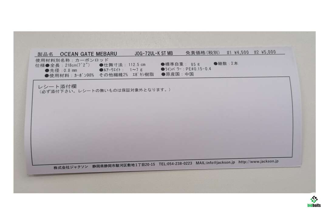 спиннинг JACKSON OCEAN GATE MEBARU JOG-72UL-K ST MB