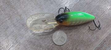 Состояние на фото - в этом случае затрудняюсь дать объективную оценку воблеру, как правило следы использования ярко выражены, может быть не всё хорошо с лкп,но видимых дефектов по функционалу не обнаружено