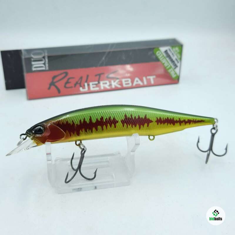 Realis Jerkbait – популярная серия воблеров для ловли щуки в российских условиях от японской компании DUO. Это классический минноу с уплощённым корпусом. Лопасть имеет тонкие края и создаёт минимальное сопротивление в воздухе при забросе приманки. Два 6-мм вольфрамовых шарика, при полёте приманки смещаются в хвостовую часть. Во время проводки эти грузики создают звуковые высокочастотные колебания, привлекающие хищника с дальнего расстояния. Воблер очень «послушный» и реагирует на малейшее движение спиннинга, позволяя экспериментировать с вариантами подачи. Во время пауз хищника спровоцирует на атаку ярко выраженный роллинг – привлекательное покачивание приманки вдоль продольной оси. Особенностью Duo Realis Jerkbait является то, что он отлично играет не только на твичинге, но и на классической равномерной проводке с паузами и без.