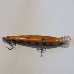Воблер суспендер 68мм, 6,3гр. Состояние рабочее. В хвостовой части заменена петля и проклеена трещина. Воду не пьет, все надежно.