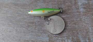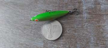 Состояние на фото - в этом случае затрудняюсь дать объективную оценку воблеру, как правило следы использования ярко выражены, может быть не всё хорошо с лкп,но видимых дефектов по функционалу не обнаружено