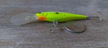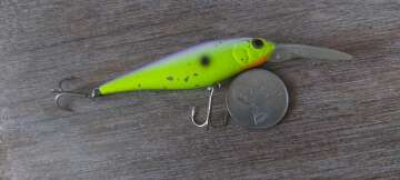 Состояние на фото - в этом случае затрудняюсь дать объективную оценку воблеру, как правило следы использования ярко выражены, может быть не всё хорошо с лкп,но видимых дефектов по функционалу не обнаружено
