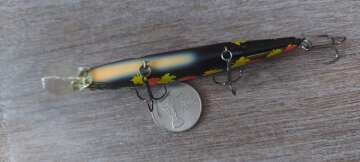 Состояние на фото - в этом случае затрудняюсь дать объективную оценку воблеру, как правило следы использования ярко выражены, может быть не всё хорошо с лкп,но видимых дефектов по функционалу не обнаружено