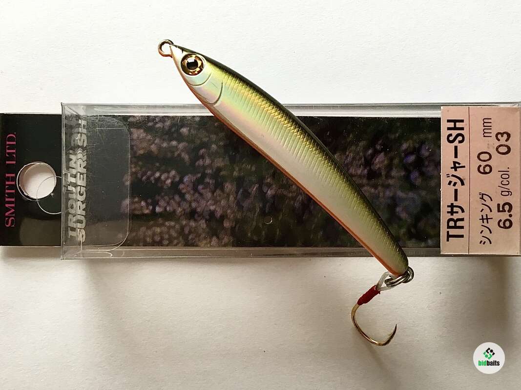 TROUTIN SURGER SH 60- безлопастные тонущие воблеры, типа «Sinking Minnow», от японской фирмы SMITH. Оснащены одинарными крючками от японской FJC. Troutin Surger создан специально для ловли форели на реках с быстрым течением. В стремнине, собственная игра воблера максимально привлекательна для рыбы. Приманка любит равномерные рывки, но не резкие.Troutin Surger подойдет для ловли судака, щуки, окуня, жереха, язя. Прекрасные полетные качества Troutin Surger, обеспечены скользящей формой и идеальным «головным» балансом. На боях окуня или жереха, воблер, деликатно - убийственно пройдется по нижней кромке котла. На паузах, воблер, тонет вибрируя, переваливаясь с боку на бок, и рыскает по сторонам.TROUTIN SURGER SH 60 подойдет для ловли в отвес на ямах.