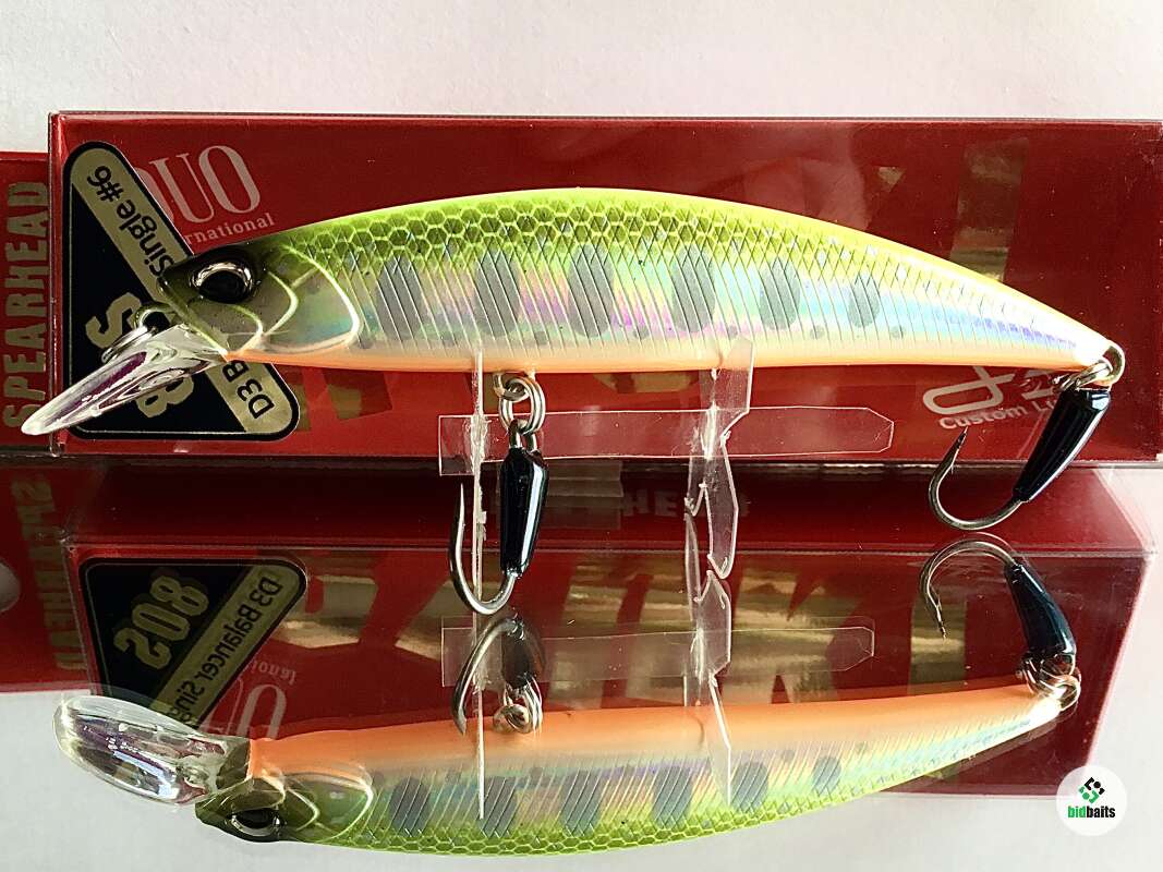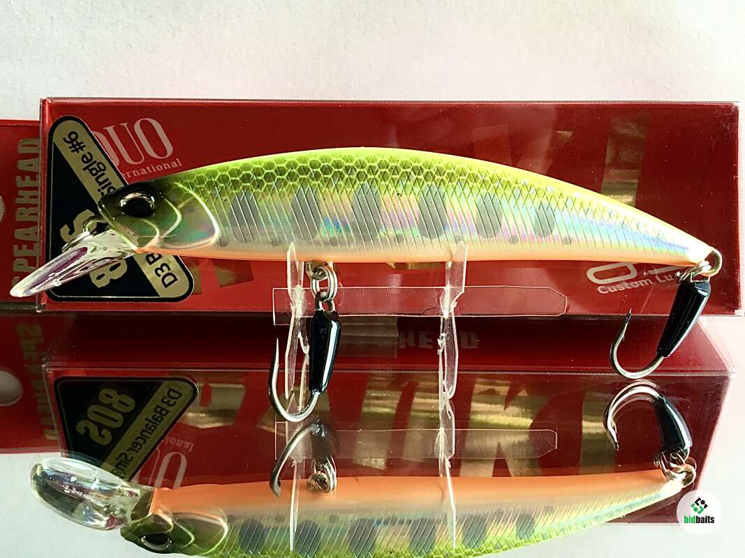Spearhead Ryuki 80S SW - серия тонущих воблеров минноу при ловле с забросами под углом вниз по течению в средних и больших реках от японского бренда DUO. Будучи заметно тяжелее и крупнее, эта минноу действительно идеально дополняет Ryuki 70S.Благодаря оптимально подобранной высоте тела и его форме, а также внутренней отгрузке, расположенной так, что центр тяжести находится максимально низко, Ryuki 80S не имеет проблем с удобством, точностью и дальностью заброса.Полудлинная лопатка приманки, прогонистый плоский корпус и смещенный к низу центр тяжести обеспечивают приманке отличное удержание в потоке воды и стабильную игру. При ловле щуки в водохранилищах и озерах тонущие воблеры подобной геометрии бывают эффективны при ловле в холодной воде и облове разных горизонтов: рывковая проводка с паузами, во время которых приманка «сыплется», или же волнообразная с замедлениями и ускорениями. Ryuki 80S SW способны провоцировать поклевку самых разных рыб таких как окунь ,судак,жерех. Ryuki D-3 - серия воблеров, оснащённая одинарными крючками-ассистами c огрузкой. Отлично подойдёт для ловли ручьевой форели и других видов рыб.