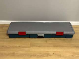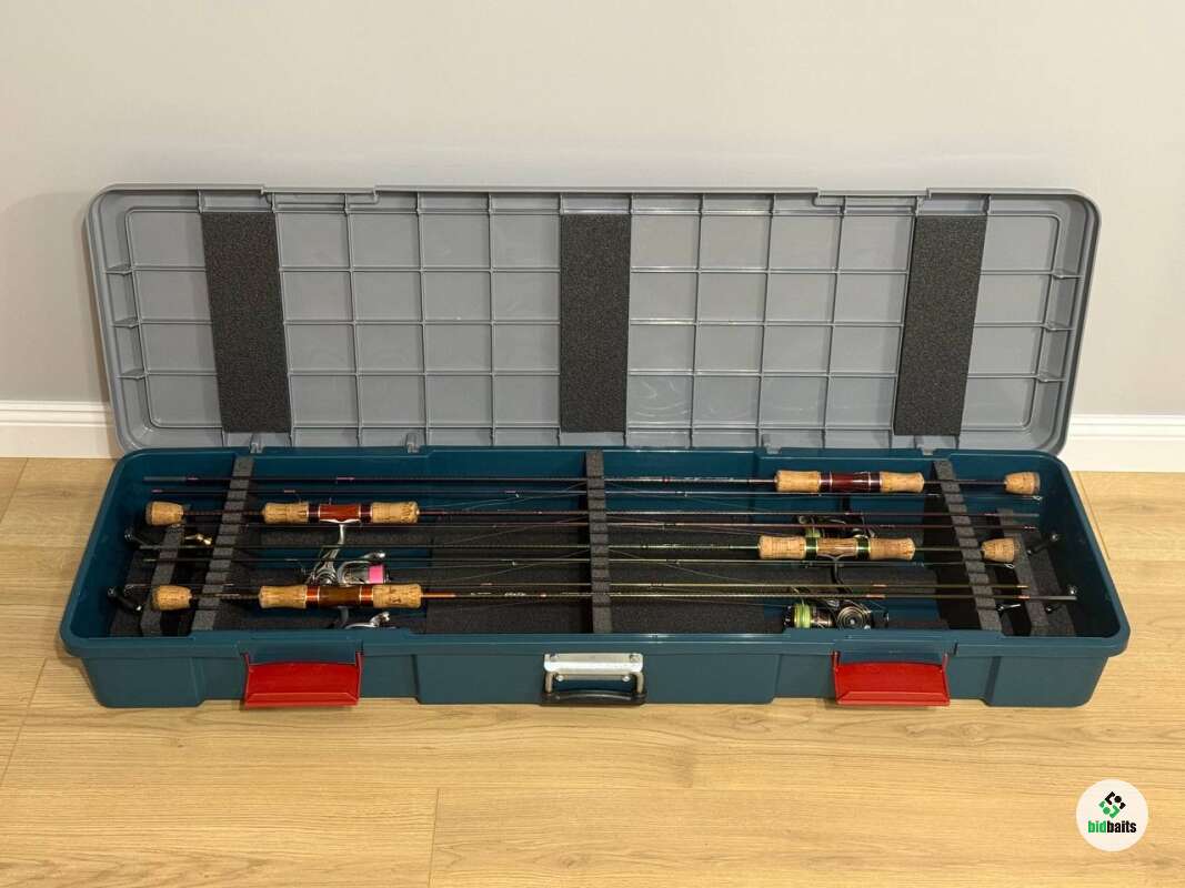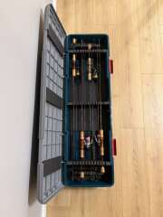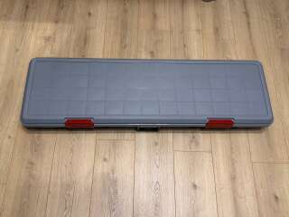 Кейс для хранения спиннингов 115*34,5*15,5 см; вес 7,7 кг Кейс рассчитан на комфортное размещение 6 спиннингов длиной до 110 см в разобранном виде (с катушками); надежные защелки плотно закрываются, предотвращают случайное открытие кейса; удобная ручка для переноса;
