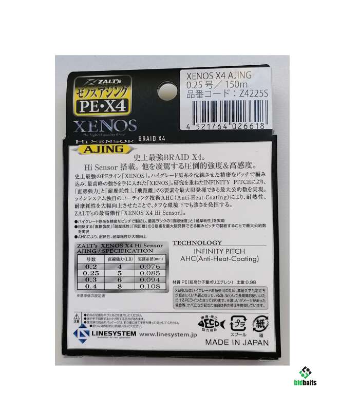 NEW! шнур LINE SYSTEM Zalt's Xenos X4 Hi Sensor Ajing 150m #0.25 (5lb)