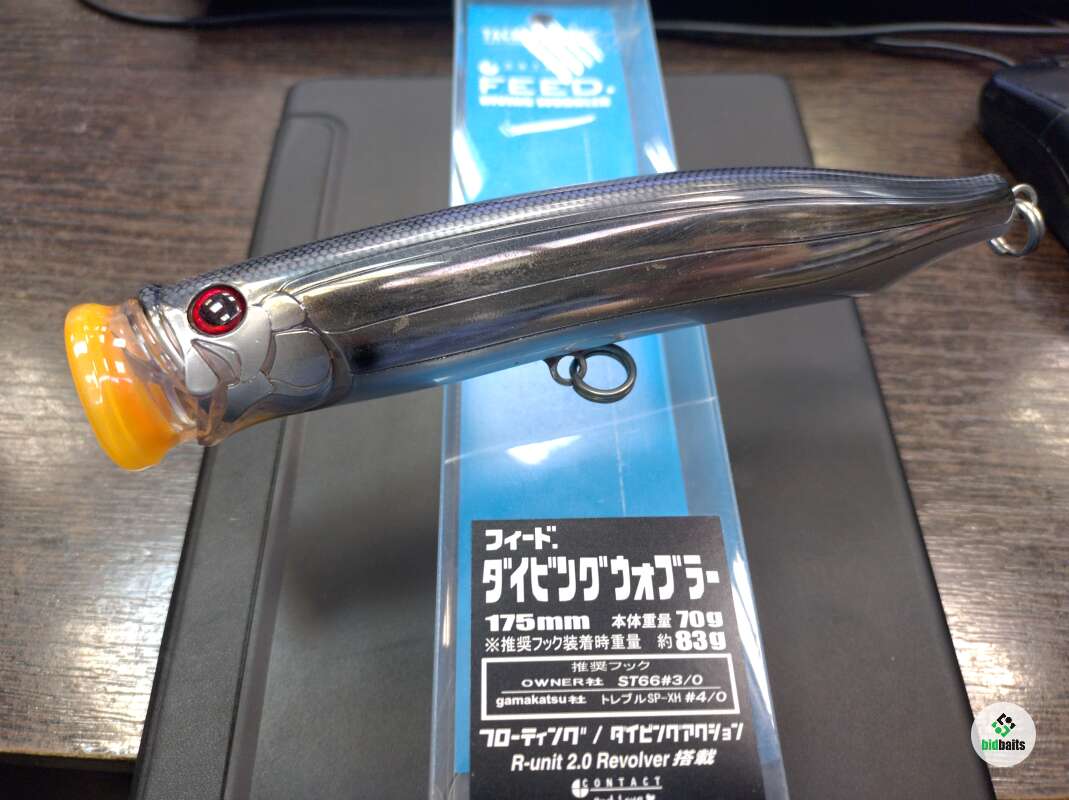 При непрерывном и коротком джерке Tackle House Feed Diving Wobbler ныряет под поверхностью, образуя при этом яркий, привлекающий объект ловли шлейф из пены. Вес воблера сосредоточен в хвостовой части, при этом плавающая поза почти вертикальна и даже небольшая пауза после непрерывного джерка даёт вам хороший шанс на поклёвку.