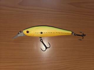 Крупный подповерхностный кренк. В задней части имеется проволочный крючок для подсадки твистера, который во время проводки повышает привлекательность девайса для хищника.