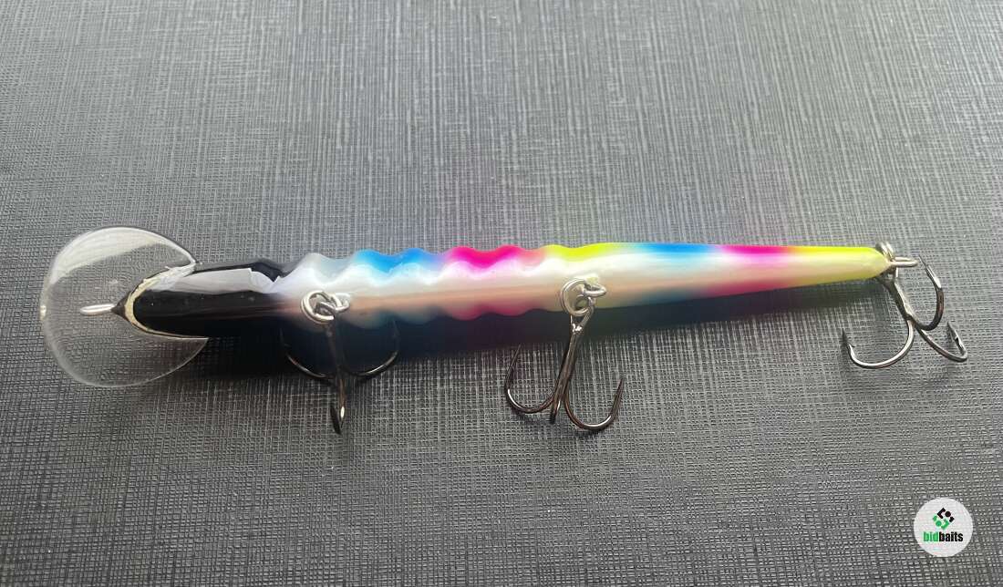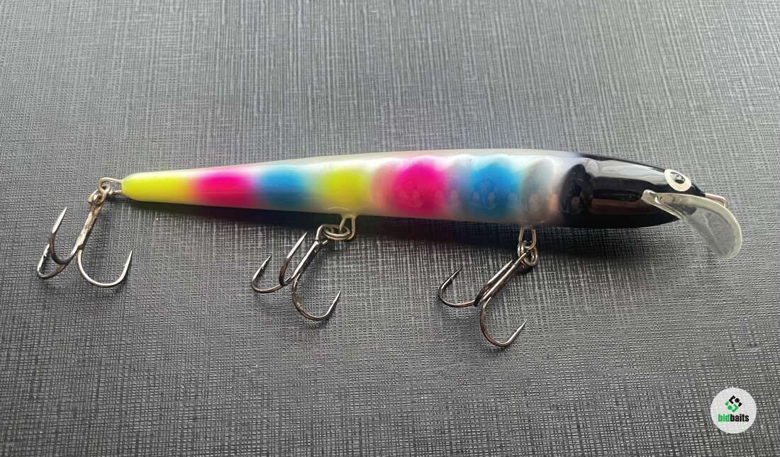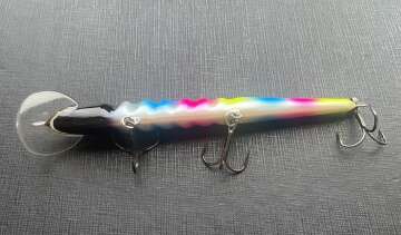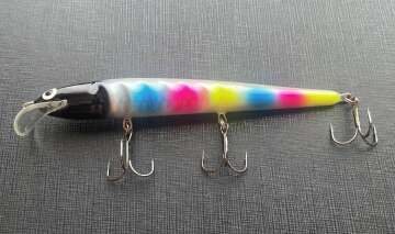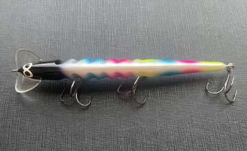 Троллинговый воблер для ловли щуки, судака, лосося и крупного окуня. Оснащен седловидной лопастью, за счет чего имеет двойную игру, помимо колебаний уходит то влево то вправо. Корпус воблера из пенополиуретана, довольно прочного материала, что позволяет приманке выдержать атаку крупного хищника. Производятся в Карелии.