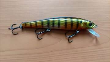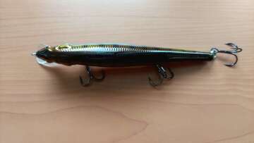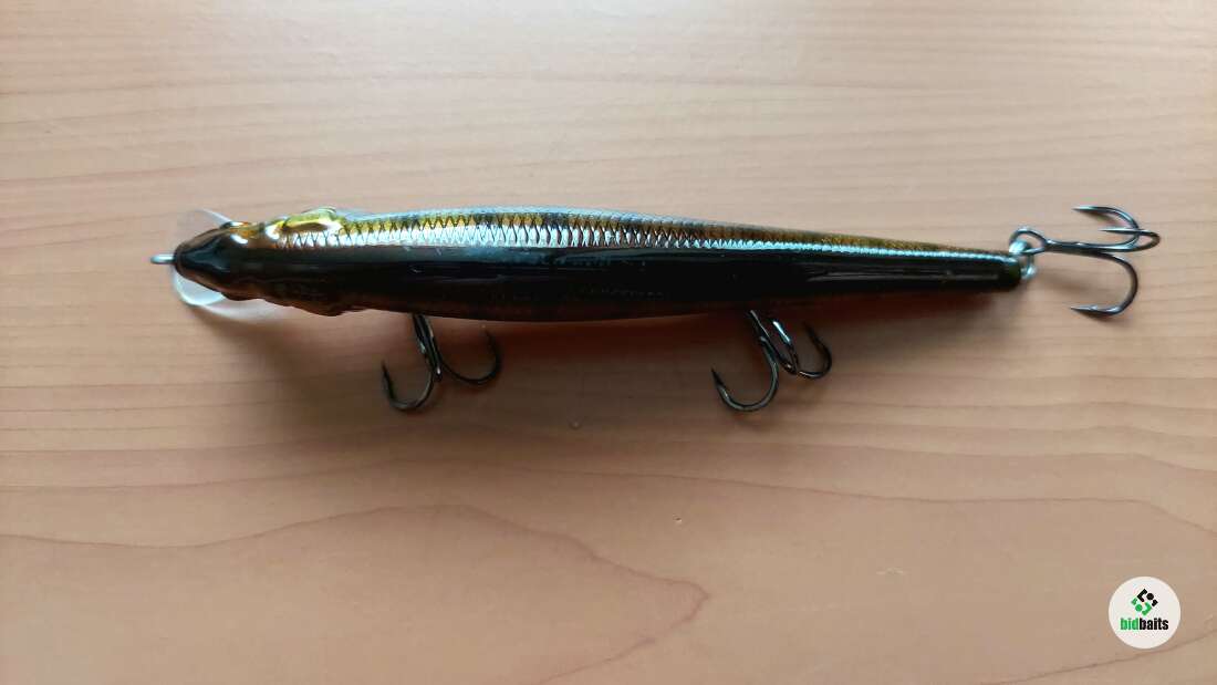 Старинный воблерок от давно почившей японской конторы. Состояние нового. Изящный и красивый флет-минноу со столь же изящной и красивой игрой в виде математически правильных глайдов.