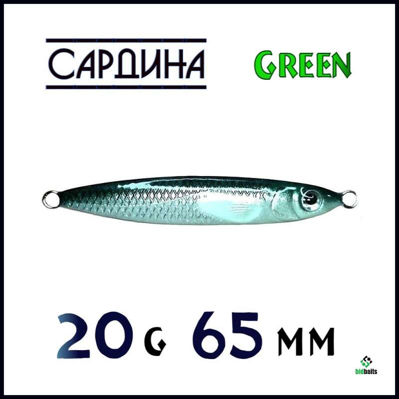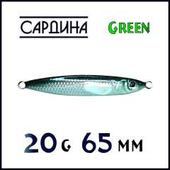 "Сардина" 20г. Пилькер ручной работы. Натуральная расцветка (Green) (65мм).