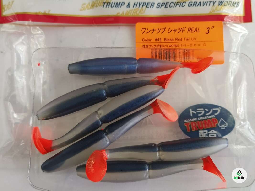 Виброхвост DIAMOND Samurai One'Up Shad 3" в упаковке 3шт цвет 42 Black Red tail UV