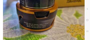 Условно бу,проездила пару месяцев в качестве запасной,с запасной неглубокой оригинальной шпулей,на воде не была,мягкий тихий ход,ни каких люфтов, куплена не на озоне.