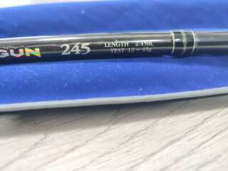 Спиннинг известной корейской фирмы, 245 тест 12-45. Спиннинг в идеальном состоянии. Одна тестовая рыбалка пол часа. Снята пленка с нижней части ручки.