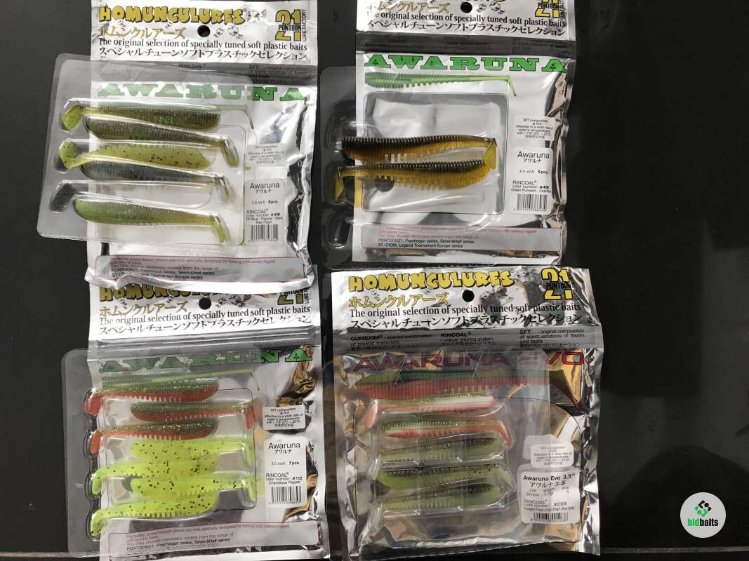 Продаются два практически равноценных набора силиконовых приманок Pontoon. 21 Awaruna, Awaruna Dun, Awaruna Evo. Наборы составлены из новых, не колотых и не использованных приманок различного размера по 19 шт.