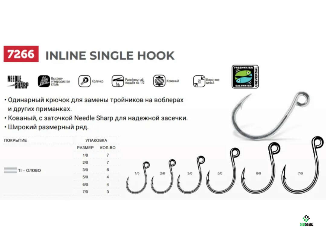 Крючки VMC 7266 TI (6шт) № 3/0