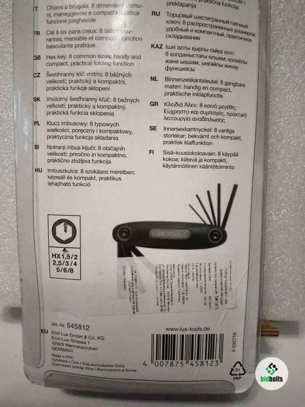 Набор торцевых Г-образных ключей.Emil Lux.