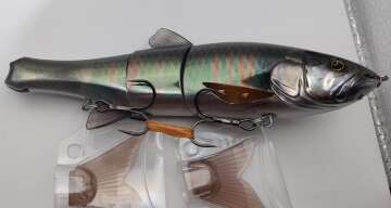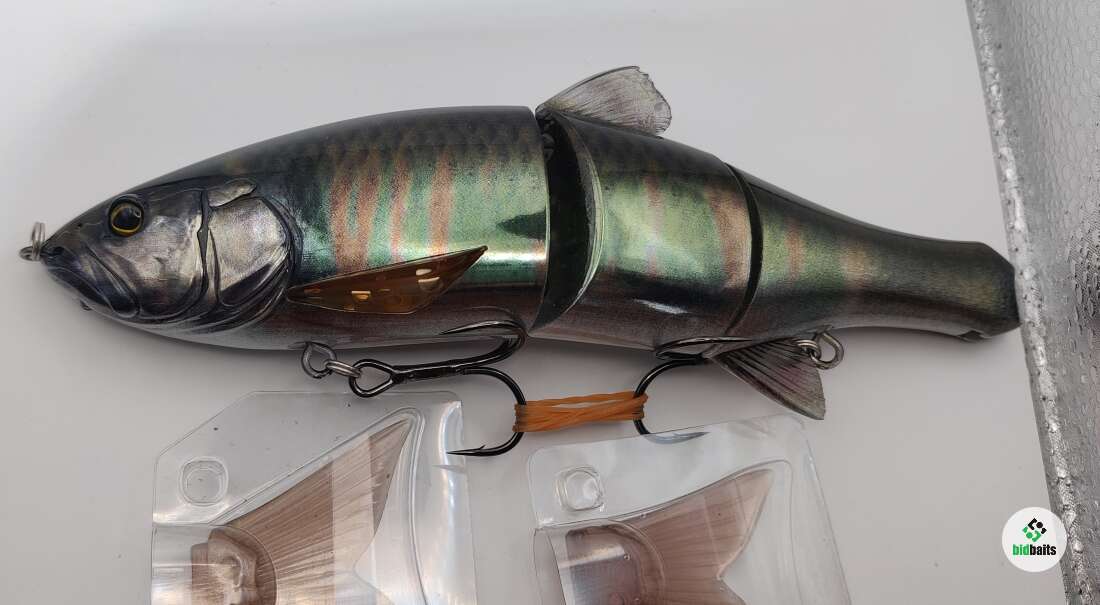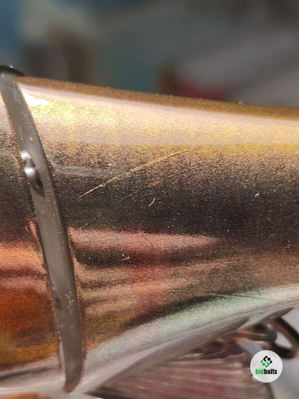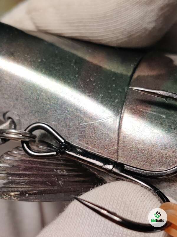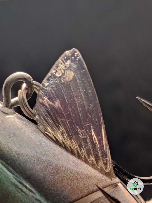 На приманке много царапин, потёртостей, тёмных точек, дефекты на верхнем и нижнем плавниках. В комплекте 2 хвоста.
