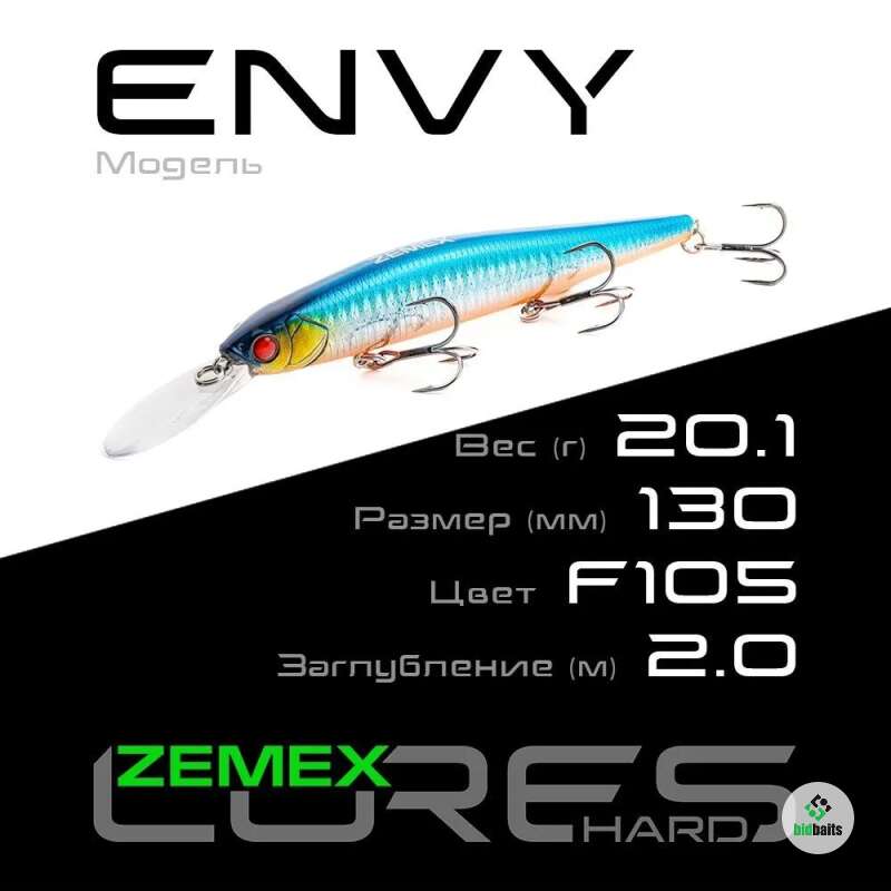 Версия модели Envy с увеличенной лопаткой и соответственно с большей рабочей глубиной. Глубоководные воблеры минноу очень востребованы у наших рыболовов, особенно когда ловля производится с лодки.