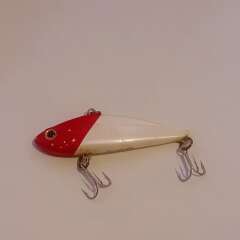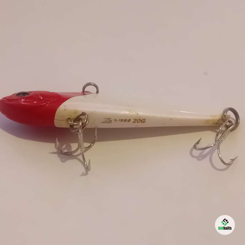 Тонущий виб 80мм, 20гр. Состояние хорошее, есть незначительные потертости и сколы лакокрасочного покрытия. У передней петли трещина, держится надежно.