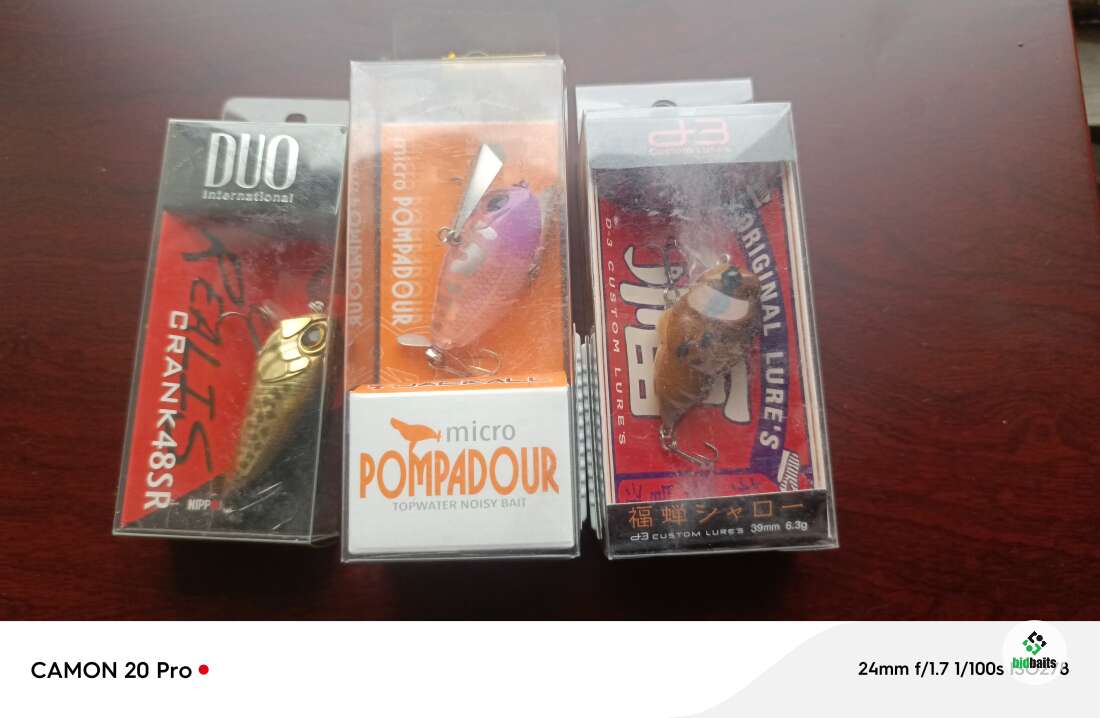 Jackall Micro Pompadour. D-3 Custom Lures Fukuzemi Shallow 39. DUO Realis Crank 48SR