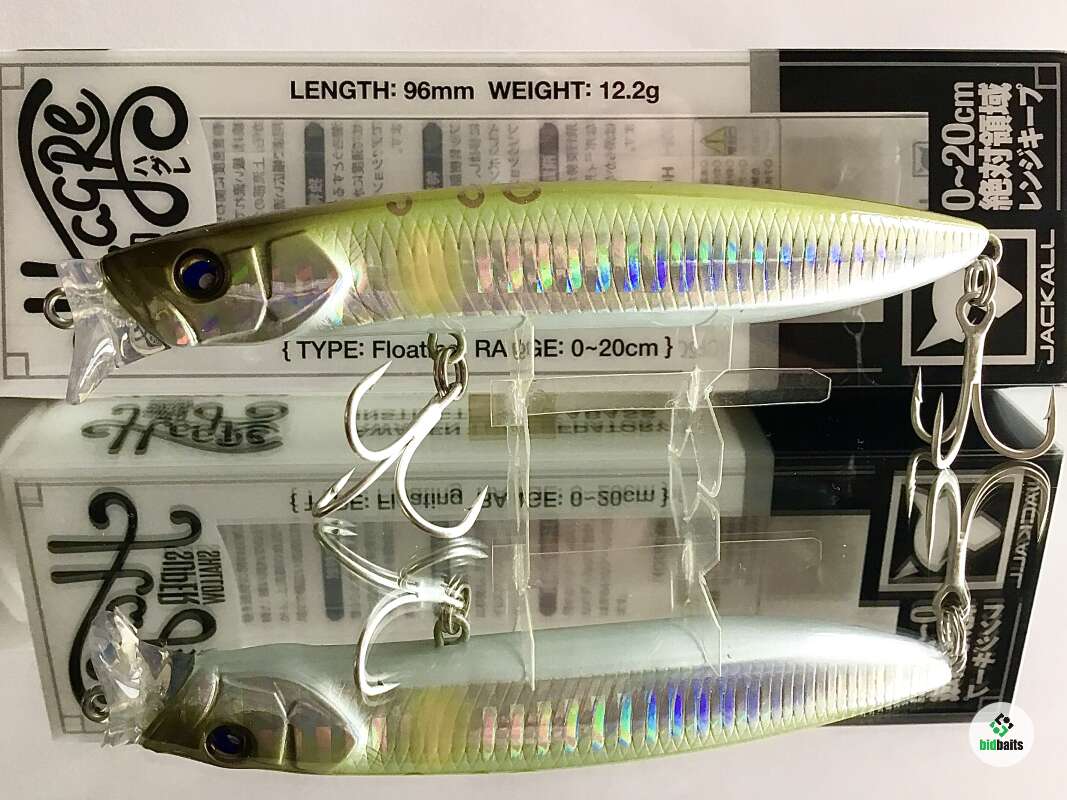 Hagre 96F - новинка от компании JACKALL специально разрабатывался для ловли на мелководье. . Благодаря оригинальной геометрии приманка обладает привлекательной игрой . Хорошо работает на разных скоростях проводки на течении и тихой воде . Отличительной особенностью воблера является инновационная система дальнего заброса, выполненная в форме цилиндра и покрытием фторуглеродом. Покрытие обеспечивает более лёгкое скольжение цилиндра по специальному каналу и позволяет добиться невероятной дальности и точности заброса даже при сильном ветре. Диапазон заглубления 0,2 м. На паузе медленно всплывает головой вверх. Отличный подповерхностник для ловли хищника.