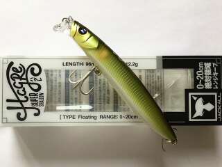 Hagre 96F - новинка от компании JACKALL специально разрабатывался для ловли на мелководье. . Благодаря оригинальной геометрии приманка обладает привлекательной игрой . Хорошо работает на разных скоростях проводки на течении и тихой воде . Отличительной особенностью воблера является инновационная система дальнего заброса, выполненная в форме цилиндра и покрытием фторуглеродом. Покрытие обеспечивает более лёгкое скольжение цилиндра по специальному каналу и позволяет добиться невероятной дальности и точности заброса даже при сильном ветре. Диапазон заглубления 0,2 м. На паузе медленно всплывает головой вверх. Отличный подповерхностник для ловли хищника.