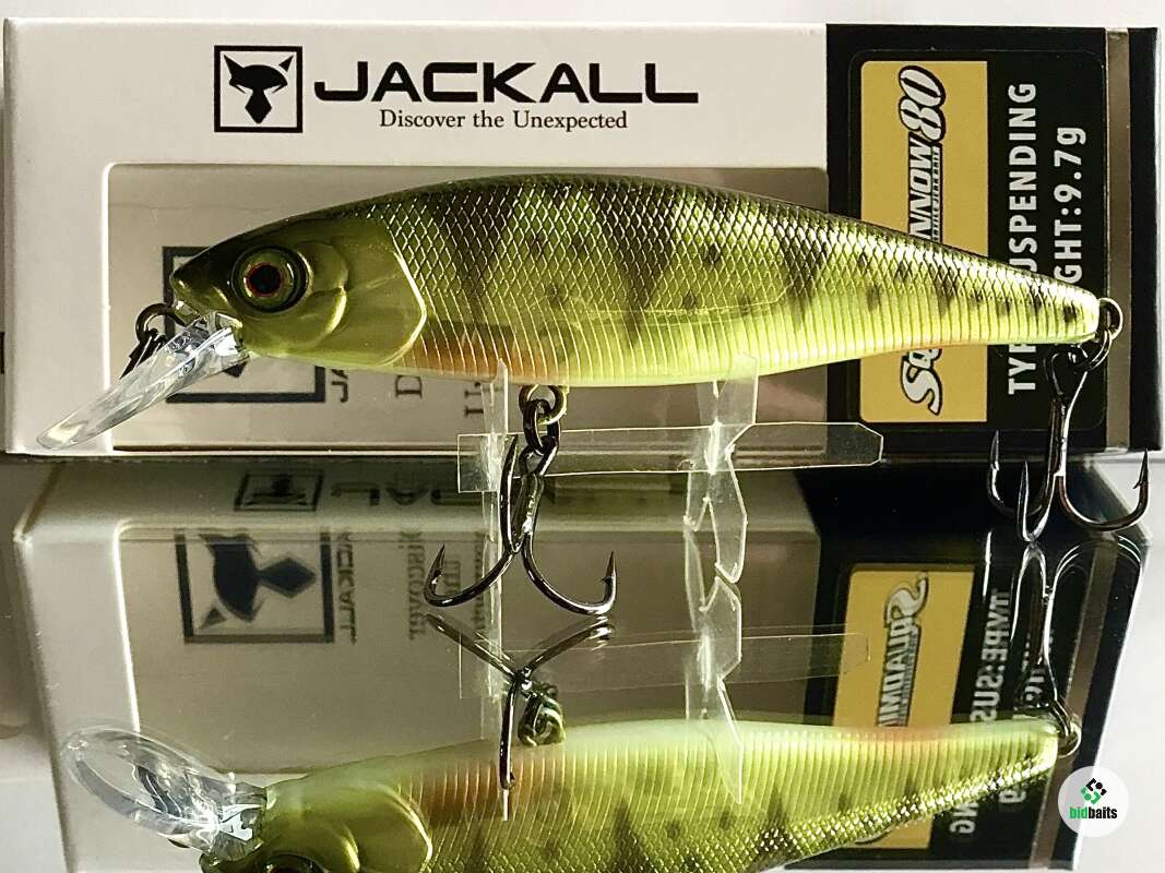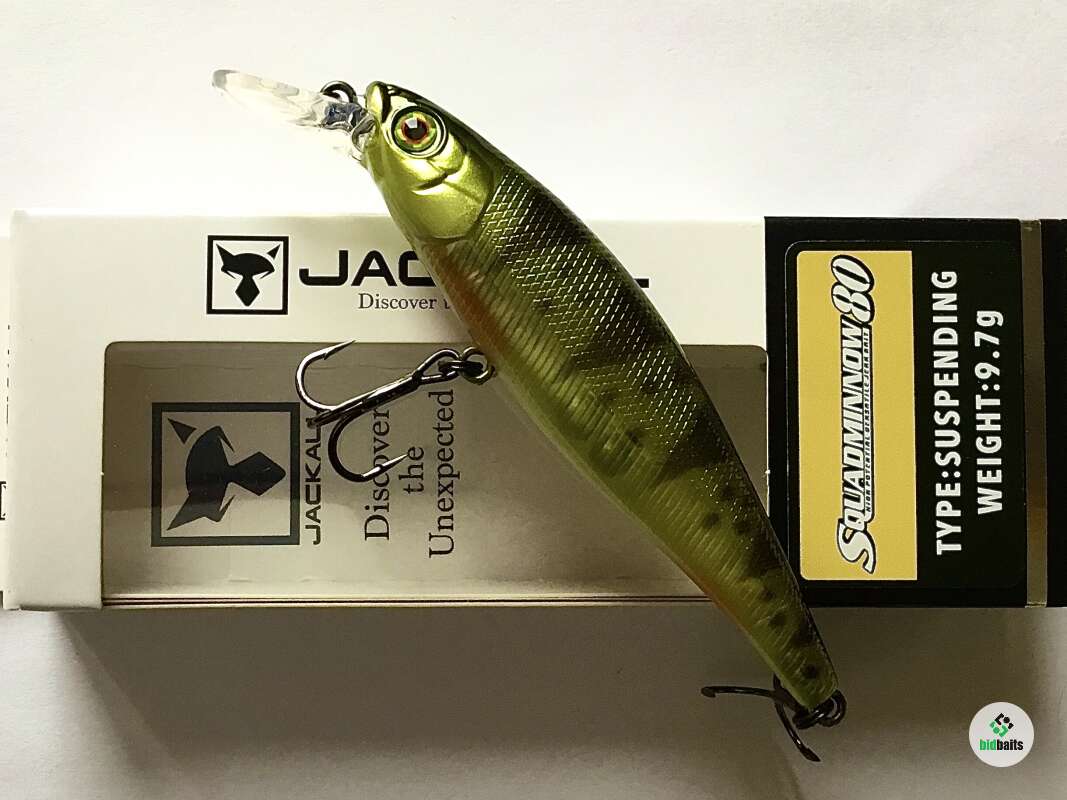 Серия Jackall Squad Minnow 80 формой корпуса напоминает продолговатую рыбку. Качество исполнения приманки как всегда на высоте. Как и многие другие приманки Jackall, Squad Minnow имеют прочное лакокрасочное покрытие и тщательно проработанные мелкие детали. Эта приманка отлично подойдет для желающих освоить твичинговую проводку. Воблер очень послушен и легко справляется с любой интенсивности проводки. Squad Minnow имеют очень чуткую, интенсивную игру, испортить которую не сможет даже совсем неопытный спиннингист. На твичинговой проводке этот воблер соблазнительно рыскает по сторонам. При остановке он несколько раз переваливается с боку на бок, после чего застывает в водной толще. Кроме того, воблеры Squad Minnow очень быстро выходят на свой рабочий горизонт и легко его удерживает. Squad Minnow 80 - идеальная щучья приманка.