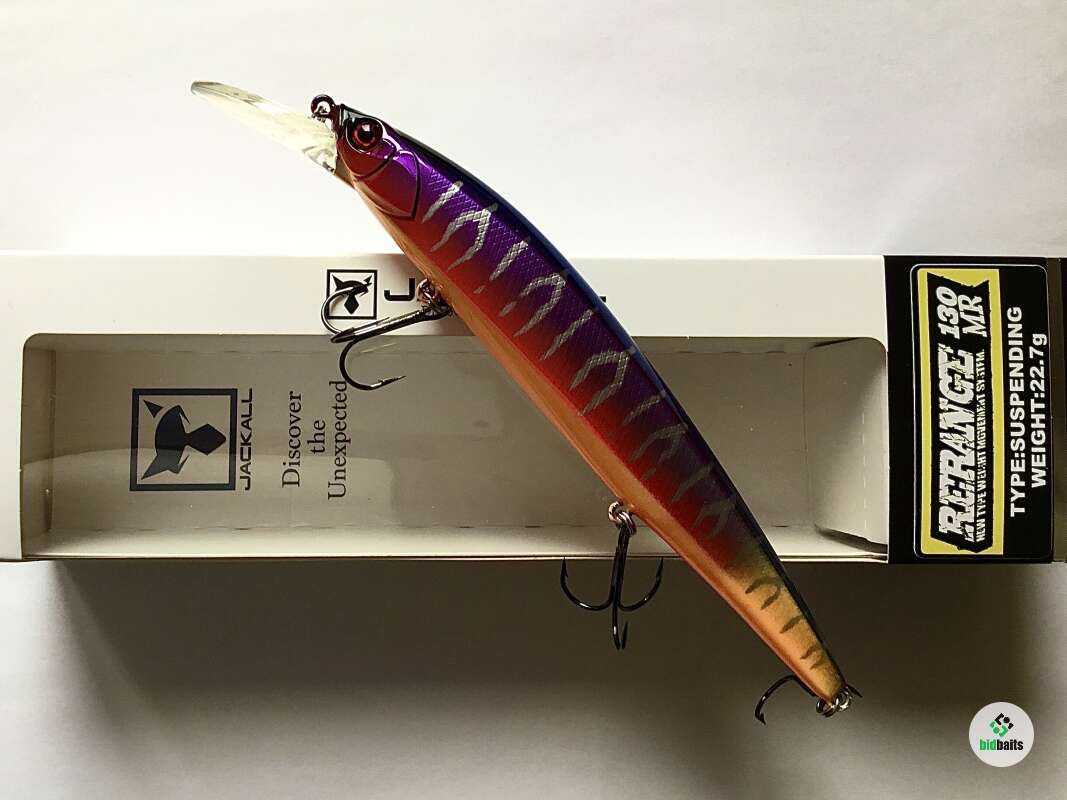 Jackall Rerange 130 MR – новый воблер класса минноу с большей лопастью, благодаря которой глубина проводки увеличилась до трех метров . Jackall Rerange 130MR сохранил новую запатентованную систему дальнего заброса с четырёхграммовым вольфрамовым грузиком цилиндрической формы, покрытым фторуглеродной (флюорокарбоновой) оболочкой. Покрытие обеспечивает более лёгкое скольжение грузика по специальному каналу в теле приманки и позволяет добиться недостижимой ранее дальности и точности заброса даже при сильном ветре. При рывковой проводке (твичинге) воблер широко ходит из стороны в сторону, покачивая всем телом и привлекая внимание рыбы с больших расстояний. Приманка стабильно работает на рывках любой силы и частоты. На паузах Jackall Rerange 130 MR зависает в толще воды, слегка покачивая боками и оставаясь привлекательной для хищника. Основной объект ловли - щука, причём трофейных размеров.
