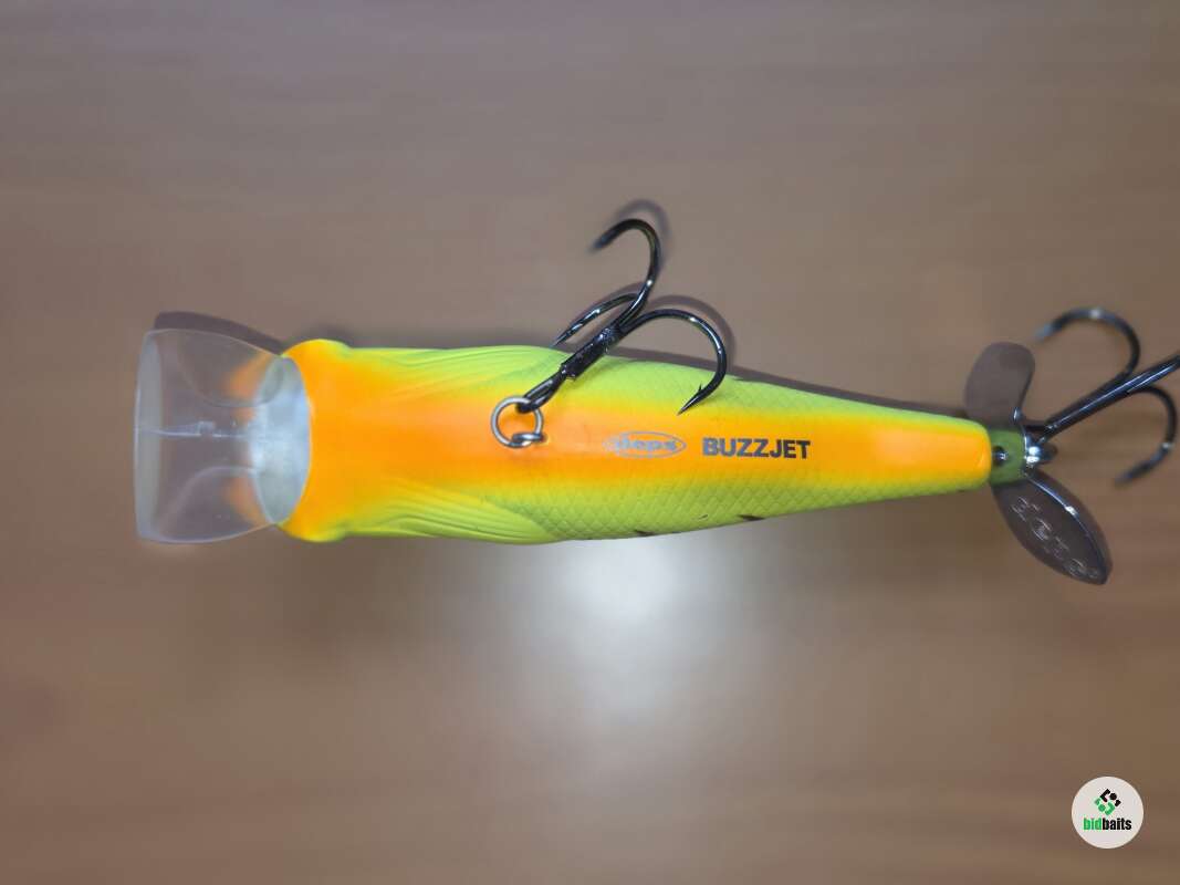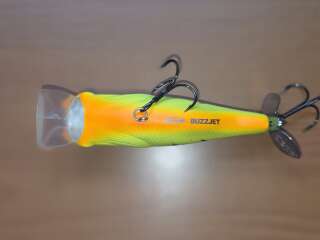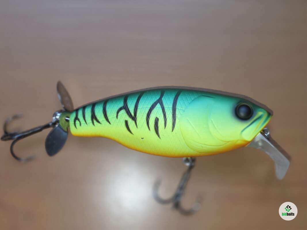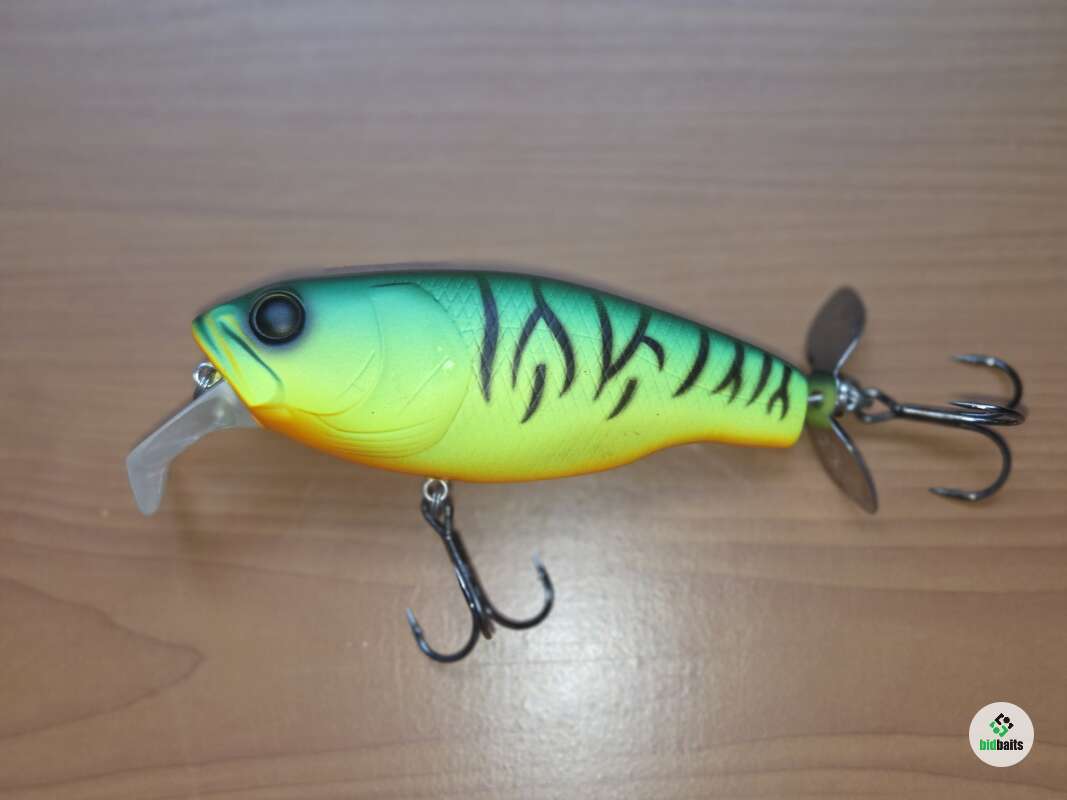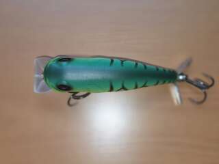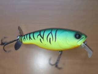 Крупный пропбейт,позволяющий себя анимировать не только рывково-паузной проводкой,как обычный топвотер,но и равномеркой,во время которой он превращается в крупный подповерхностный кренк,создающий возмущение водной толщи благодаря пропеллеру. Состояние хорошее.