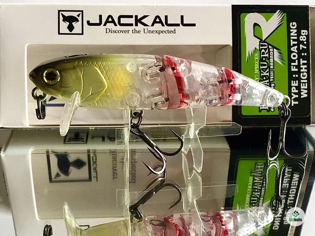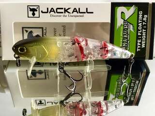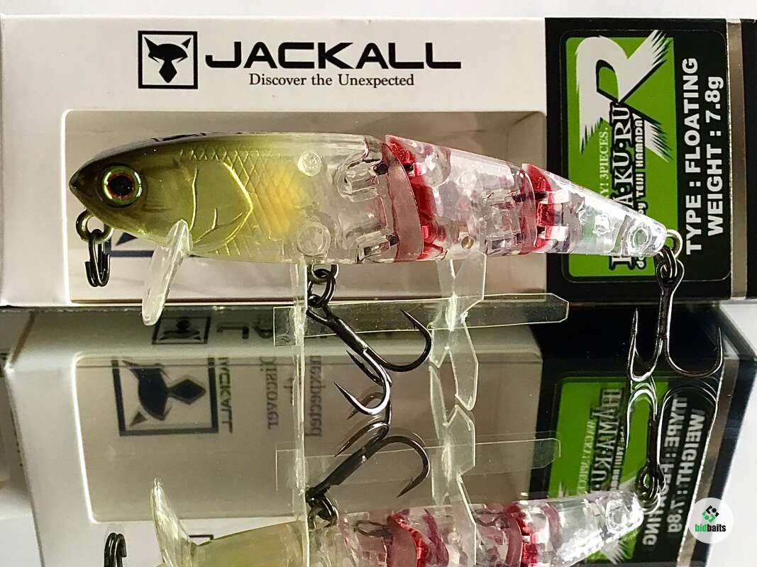 Hama-Ku-Ru от компании JACKALL специально разрабатывался для ловли на мелководье. Его характеристики позволяют выполнять проводку поверх водной растительности, не собирая при этом пучки травы. Благодаря трём сегментам, из которых состоит воблер, его игра в воде при проводке просто завораживает. Он идёт под водой очень плавно, широкой змейкой, причём даже на маленьких скоростях.В большинстве случаев при ловле на мелководье оптимально работает проводка плавными довольно амплитудными потяжками, между которыми нужно делать довольно продолжительные паузы. HAMA-KU-RU показывает хорошие показатели и на равномерной проводке. Благодаря своему весу Jackall HAMA-KU-RU обладает отличной аэродинамикой, что позволяет использовать его для дальних забросов и активного поиска рыбы. Отличная мелководная приманка для ловли средней и крупной щуки.