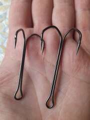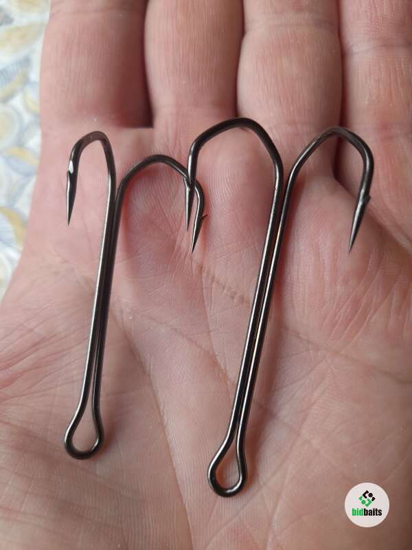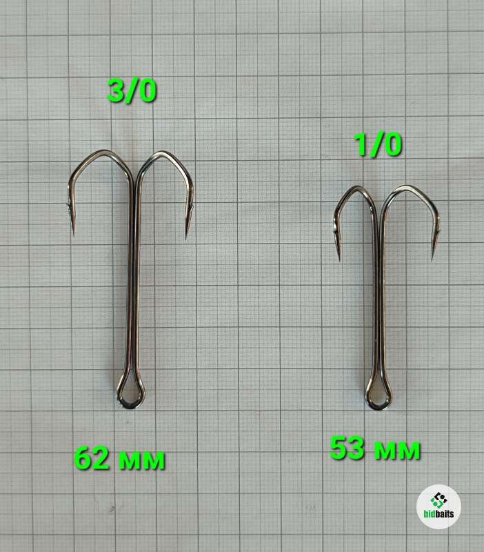 Крючки двойники типа барбариан с обратным жалом номер 1/0 и 3/0: