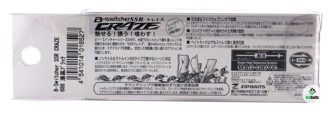 Воблер ZipBaits B-Switcher SSR CRAZE Silent (42мм, 6,5г) цвет 688 Jet Black Black