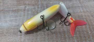 Состояние на фото - в этом случае затрудняюсь дать объективную оценку воблеру, как правило следы использования ярко выражены, может быть не всё хорошо с лкп,но видимых дефектов по функционалу не обнаружено