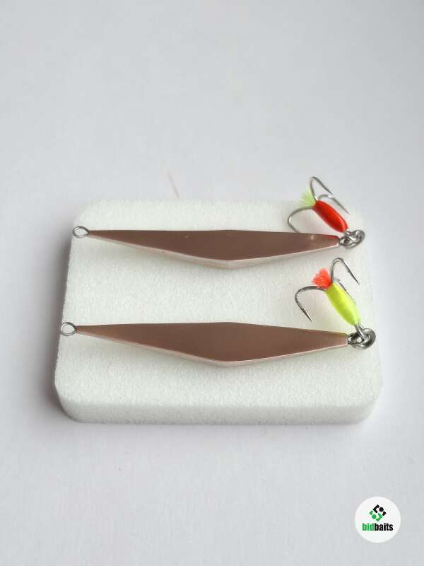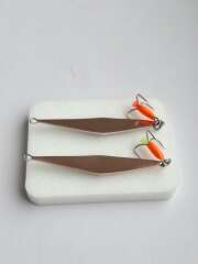Блесна изготовлена из нейзильбераи меди 2 коронки. Размер 45мм, вес 3,3гр+-. Тройник owner. Капля и хвостик светится в уф.
