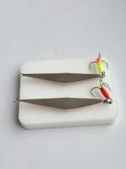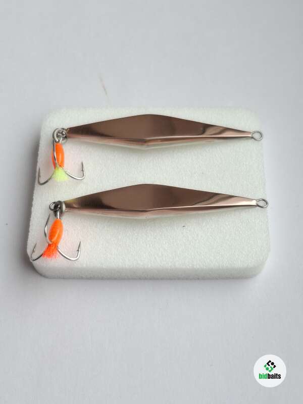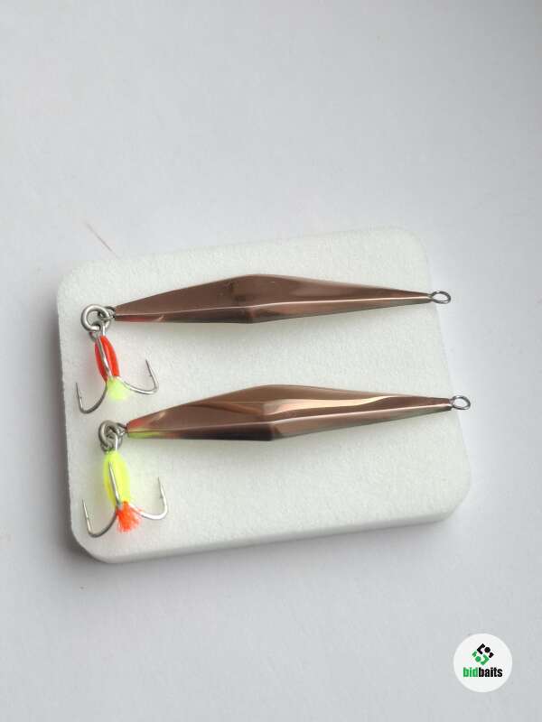 Блесна изготовлена из меди и нейзильбера 2 коронки. Размер 45мм, вес 3,3гр+-. Тройник owner. Капля и хвостик светится в уф.