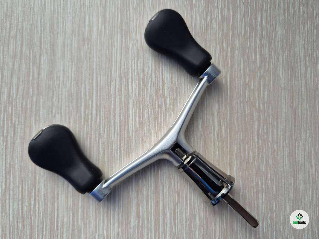 Двойная рукоять Shimano для 2500-4000 р-ов. Оснащена 4-мя втулками (можно заменить на подшипники). Размер по осям кнобов 80 мм., длина оси квадрата 23 мм., квадрат - 4.5 мм., вес 57.5 гр.