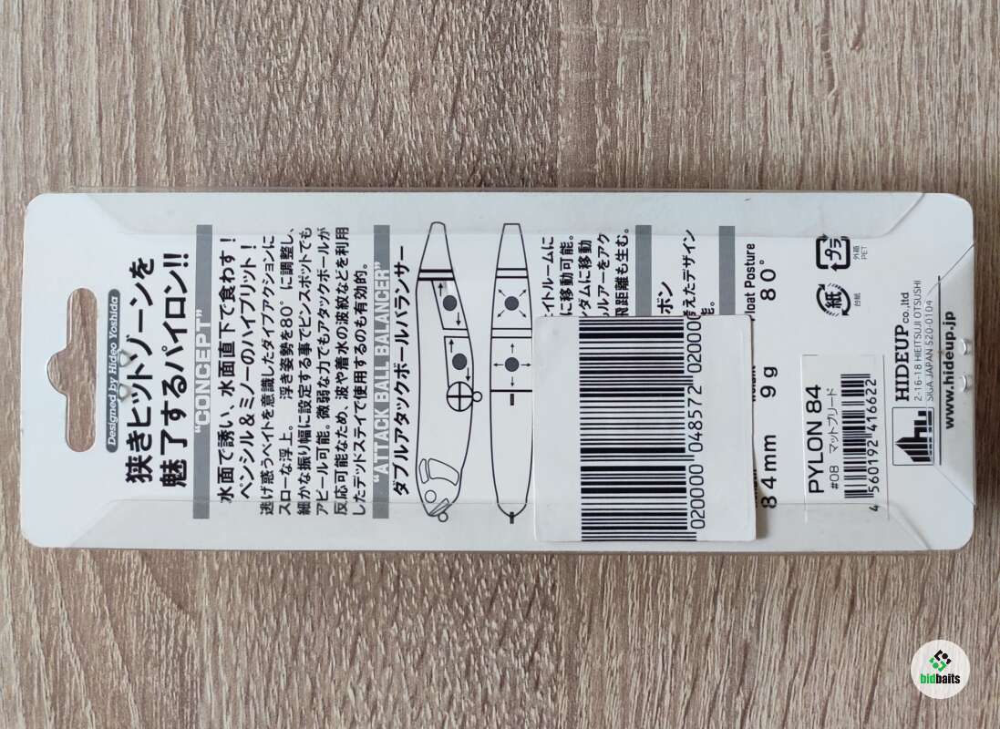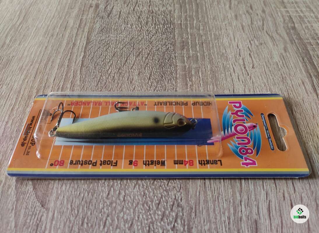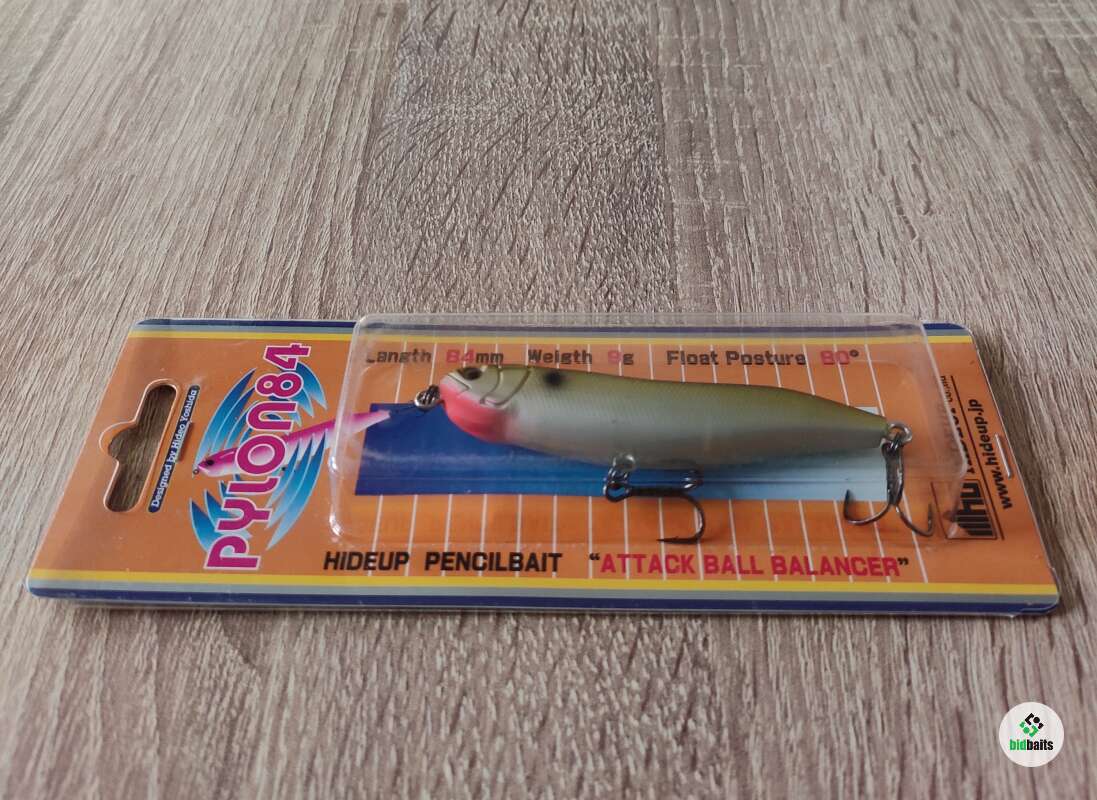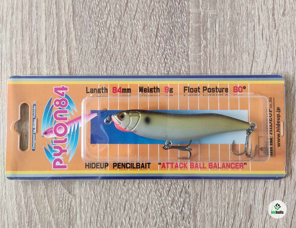 Воблер Hideup Pylon 84mm – данная модель из серии поверхностных шумовых воблеров Pylon от японской компании Hideup. Она обладает характерной, яркой игрой при проводке, подражающей паническому поведению малька у поверхности воды. Этот воблер прекрасно подходит для ловли щуки на мелководье или жереха. Главная особенность Hideup Pylon 84 мм заключается в том, что эта приманка занимает положение 80 градусов относительно плоскости поверхности воды, оставляя над водой небольшую часть головы. Уокер оснащен двумя качественными тройниками. Данная модель имеет размер 8,4 см и весит 9 гр.