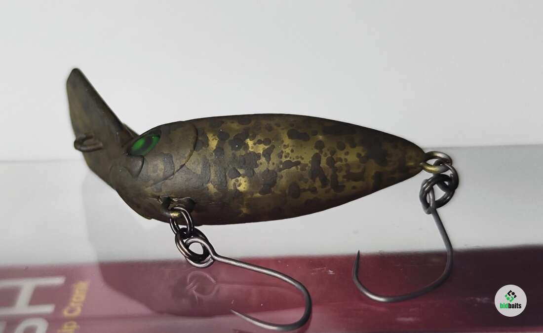 Rodio Craft UssA S - тонущий воблер для ловли прудовой форели имеет не стандартное расположение лопатки, которая находится в верхней головной части воблера. Благодаря такому расположению достигается сильное лобовое сопротивление, что позволяет быстрее заглубить воблер и придает ему особую неповторимую игру на любых скоростях проводки. Приманка оснащена двумя одинарными крючками с тефлоновым покрытием.