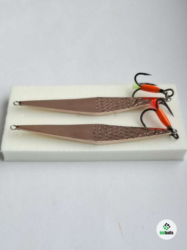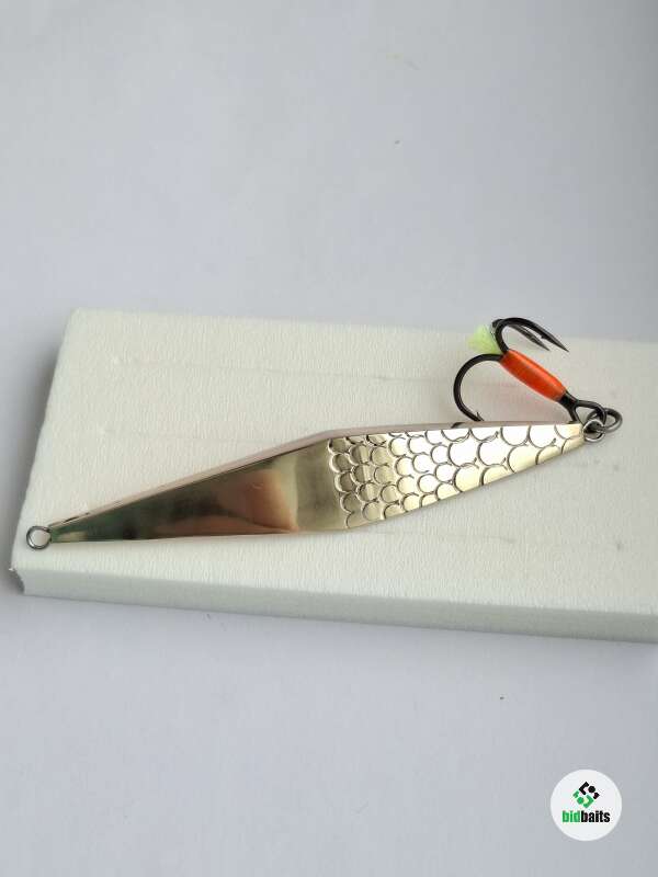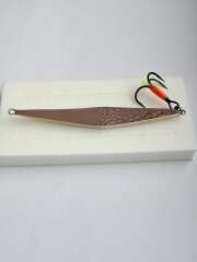 Блесна изготовлена из латуни и меди. 2 коронки. Размер 75мм, вес 11-12гр. Тройник BKK. Блесна хорошо подходит для ловли судака, крупного окуня, щуки.