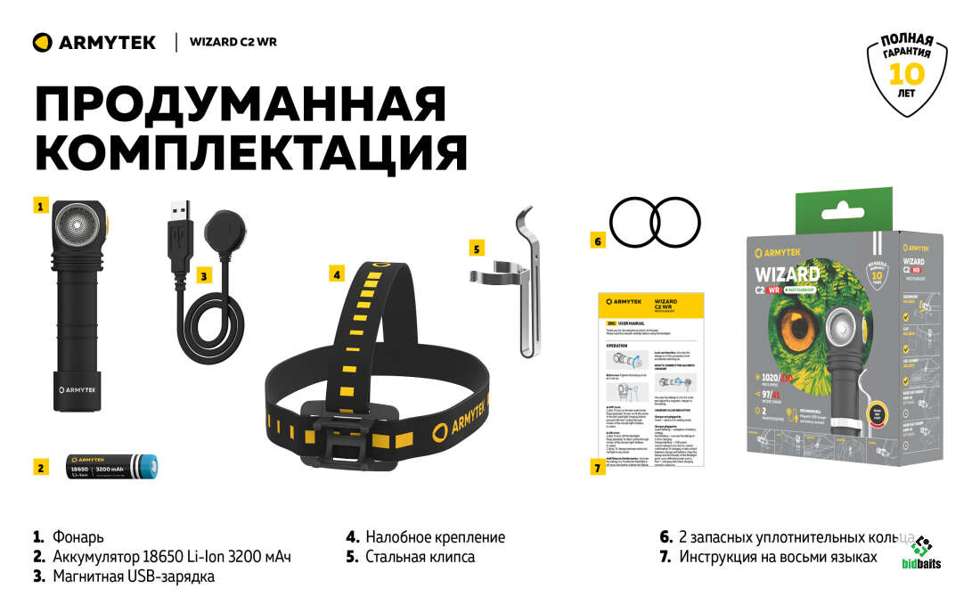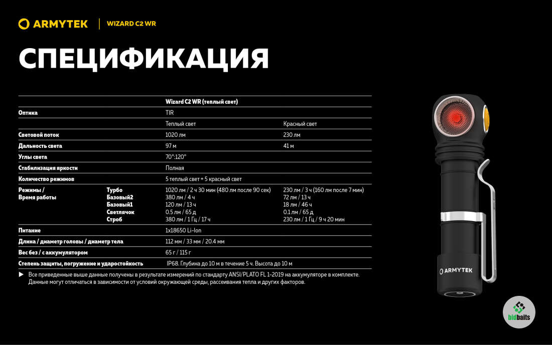 ARMYTEK WIZARD C2 WR MAGNET USB (ТЕПЛЫЙ СВЕТ)