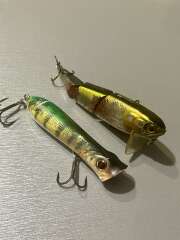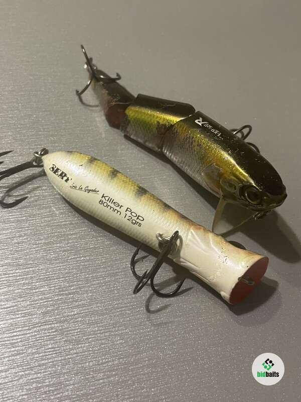 В боевом состоянии. Покусаны щуками и подзатёрты крючками. JACKALL HAMA-KU-RU R + Sert Killer Pop 80 F. Воблеры в рабочим состоянии