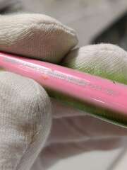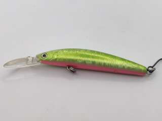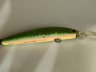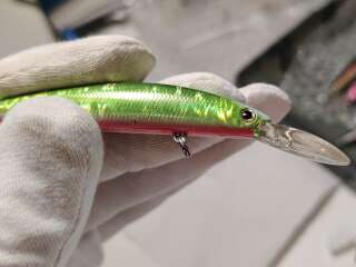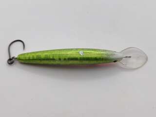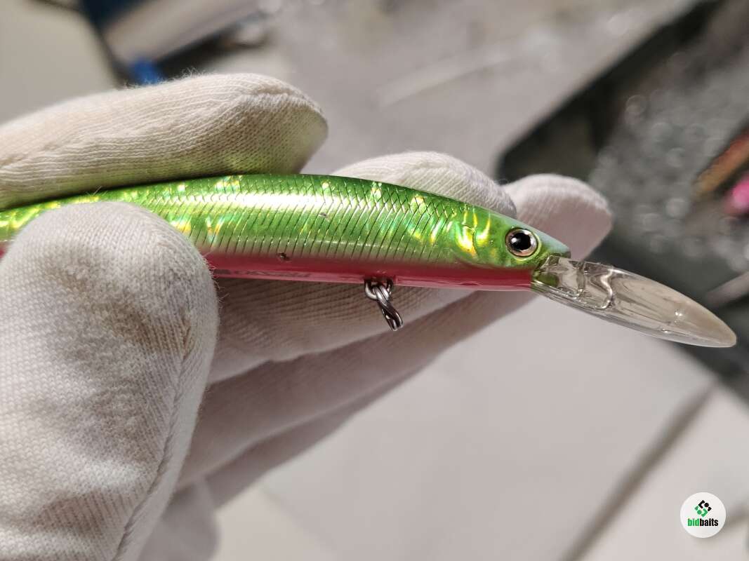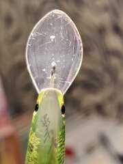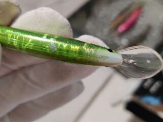 На лопатке и теле приманки очень много царапин, потёртостей, сколов краски, есть следы коррозии. Лопатка стёсана, пластик на краю лопатки начал расслаиваться!!!