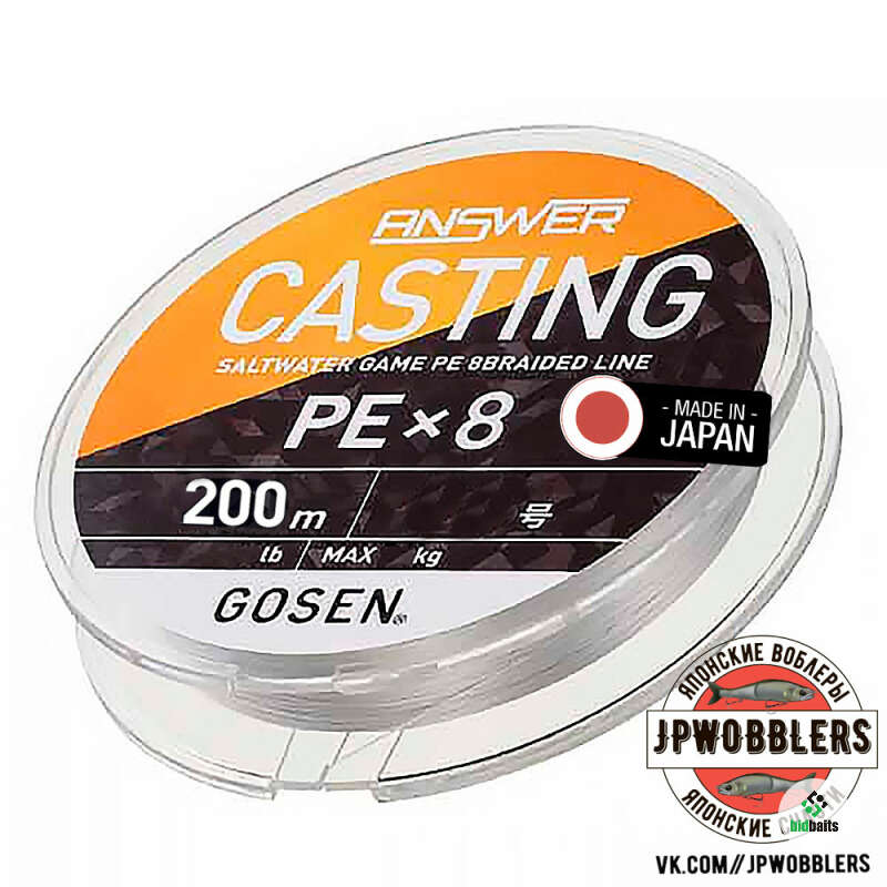 Answer Casting PE x8 от Gosen представлен в размотке 150 и 200 метров.