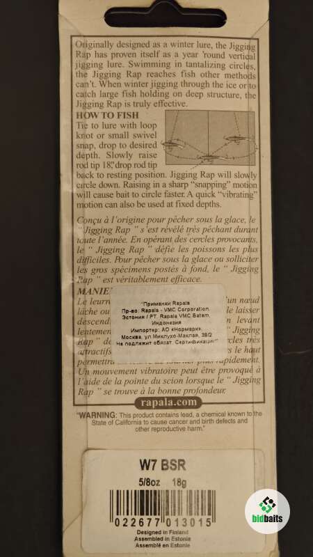 Новый оригинальный балансир Rapala Jigging Rap W7 цвет BSR, 18 гр.