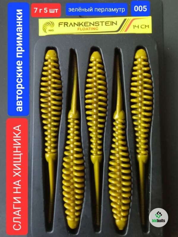 Слаги на хищника FRANKENSTEIN FLOATING 14 см,7 гр,5 шт,color 005 Зеленый перламутр