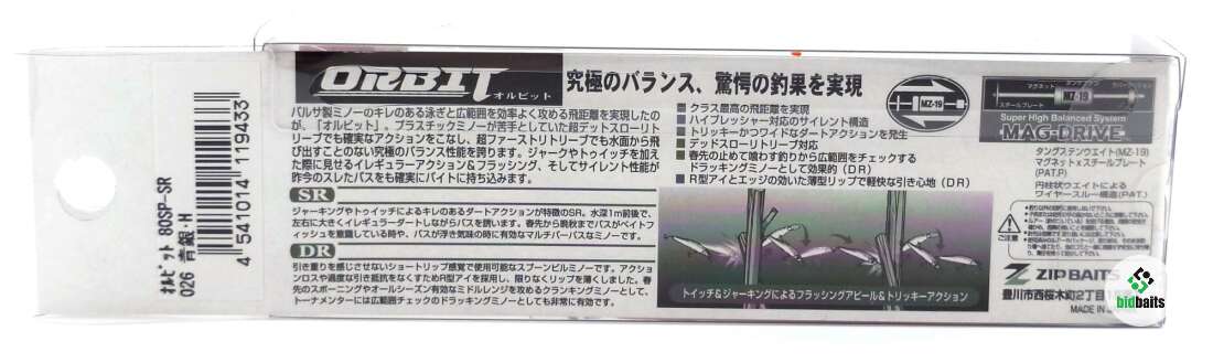 Воблер ZipBaits Orbit 80SP-SR (80мм, 8,5г) цвет 026 Blue Silver H